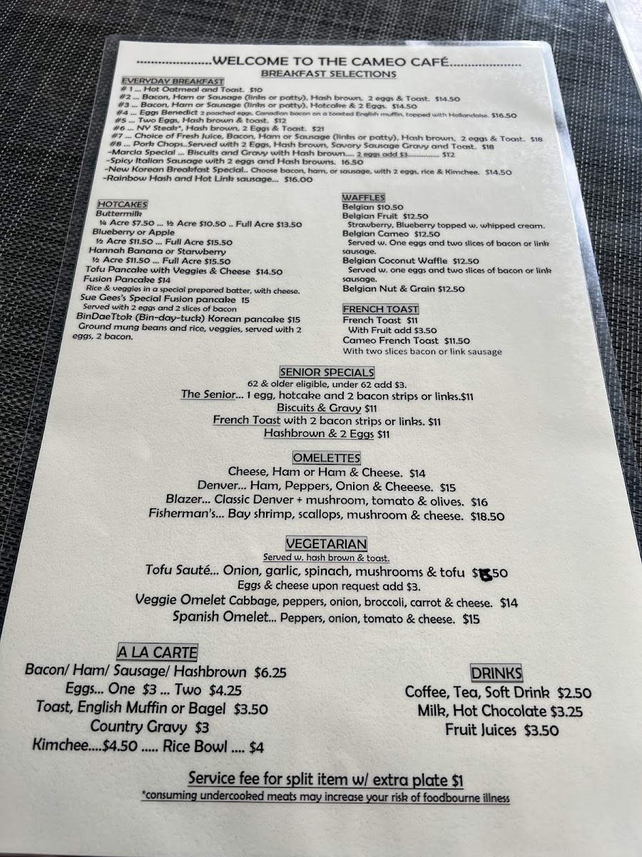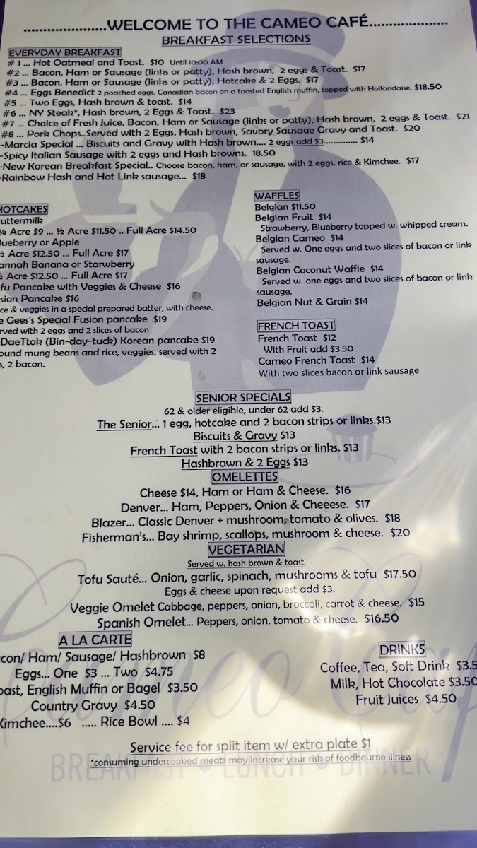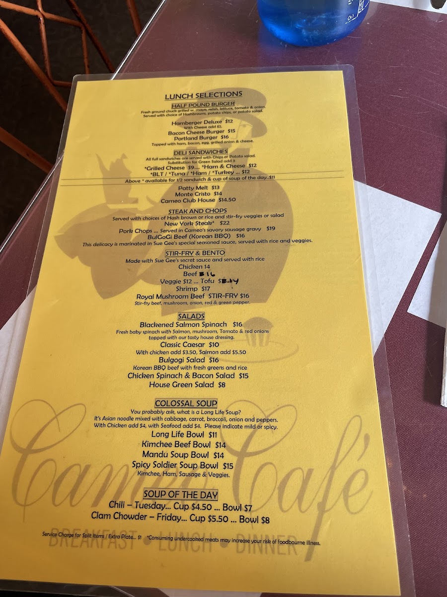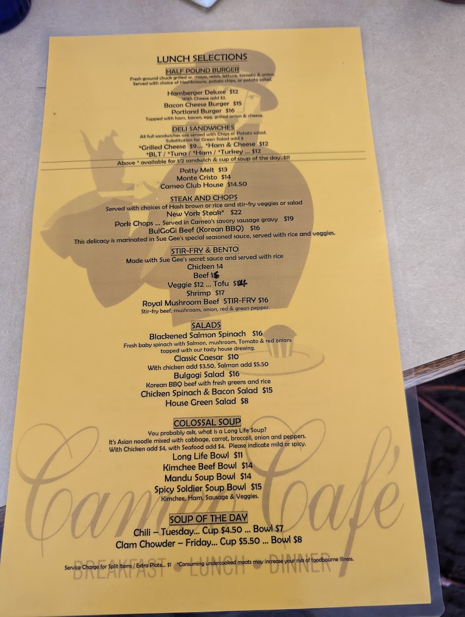 The menu at Cameo Cafe East features an array of delicious options, with a standout focus on hearty breakfasts and fresh ingredients. Start your day with the unforgettable Korean Breakfast Special, which has received rave reviews for its perfectly seasoned ham, fresh eggs, and tangy kimchi that adds just the right touch of authenticity. If you’re a fan of salads, don’t miss the Bulgogi Salad. This dish showcases tender Korean BBQ beef served over a bed of fresh greens and rice, offering a delightful balance of flavors. Another crowd-pleaser is the Blackened Salmon Spinach Salad, featuring fresh baby spinach topped with succulent salmon, mushrooms, and a tangy house dressing.