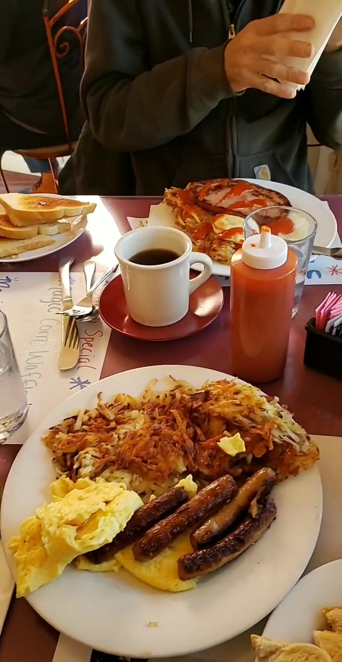 For those craving something warm and filling, the Royal Mushroom Beef StirFry is a must-try, delivering tender beef tossed with savory mushrooms and colorful peppers, all expertly stir-fried to perfection. And for a sweet finish, enjoy the cafe's gigantic pancakes, which are renowned for being fluffy and delicious—sure to satisfy even the heartiest eaters. No breakfast would be complete without their freshly squeezed orange juice, adding a refreshing touch that perfectly complements the meal.